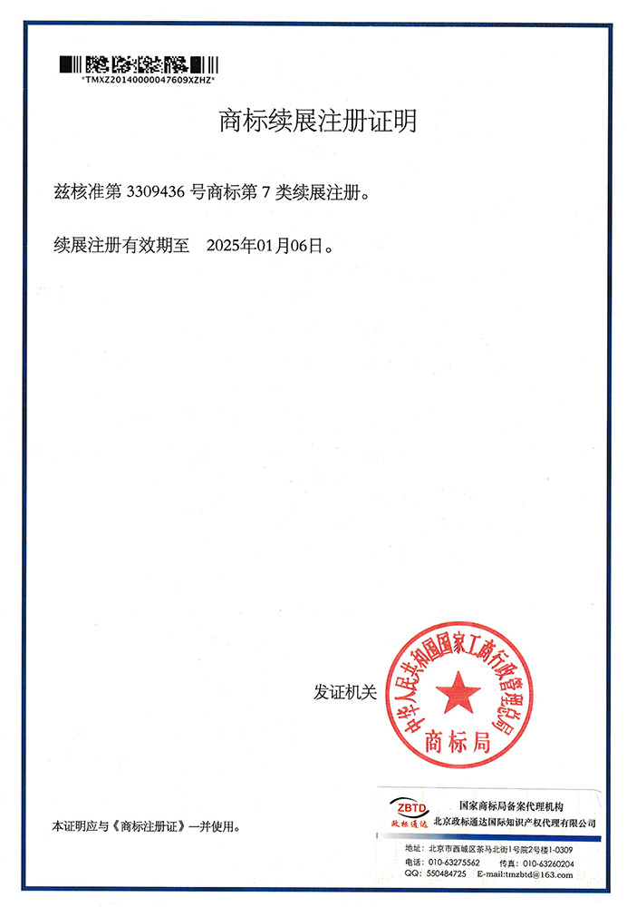 商標續展注冊證明